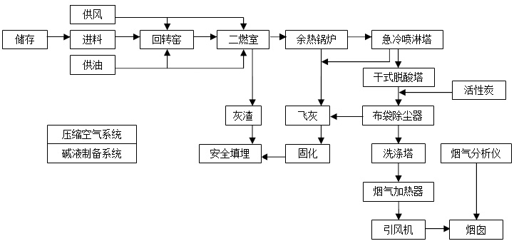 焚燒處理工藝流程 焚燒處理能力為5000噸/年