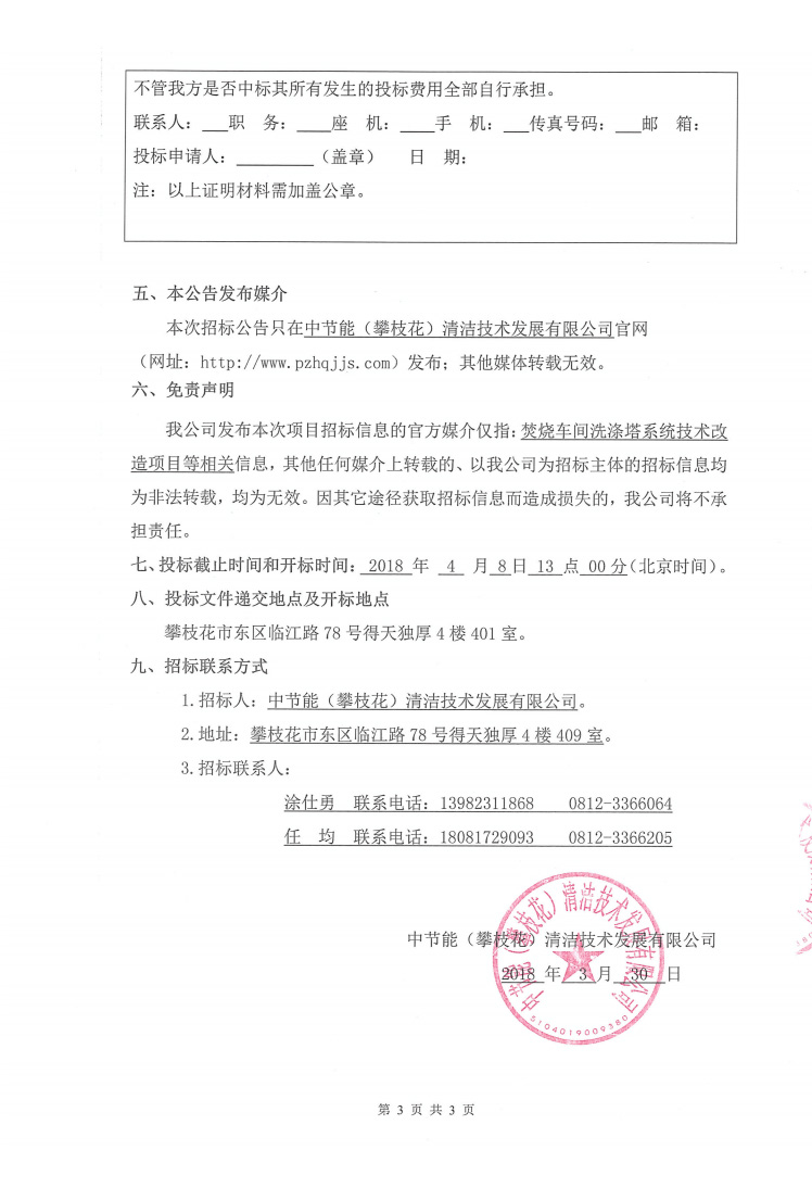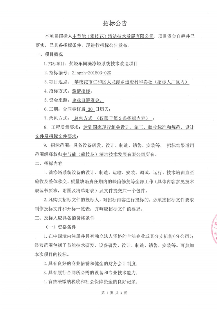 焚燒車間洗滌塔系統(tǒng)技術(shù)改造項目招標公告