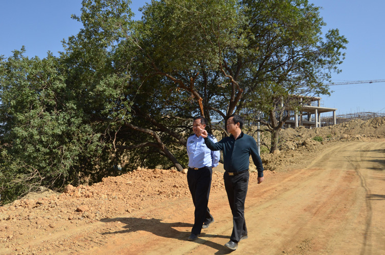 2013年3月14日袁總帶領(lǐng)恒德公司全體員工檢查工地,袁杰總經(jīng)理對項目生活區(qū)、廠區(qū)的生態(tài)建設(shè)作出嚴(yán)格要求,對原有樹木保護(hù)、綠化、排水工作進(jìn)行詳細(xì)布置落實(shí)。